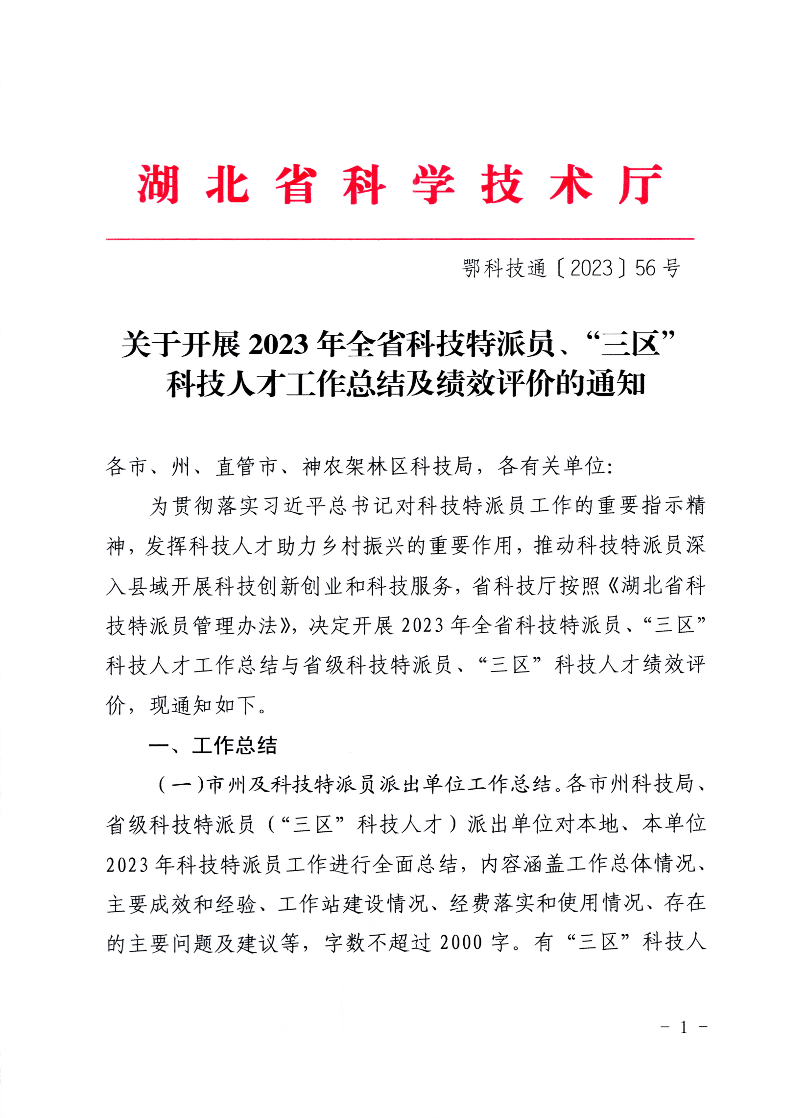 【通知公告】关于开展2023年全省科技特派员、“三区”科技人才工作总结及绩效评价的通知
