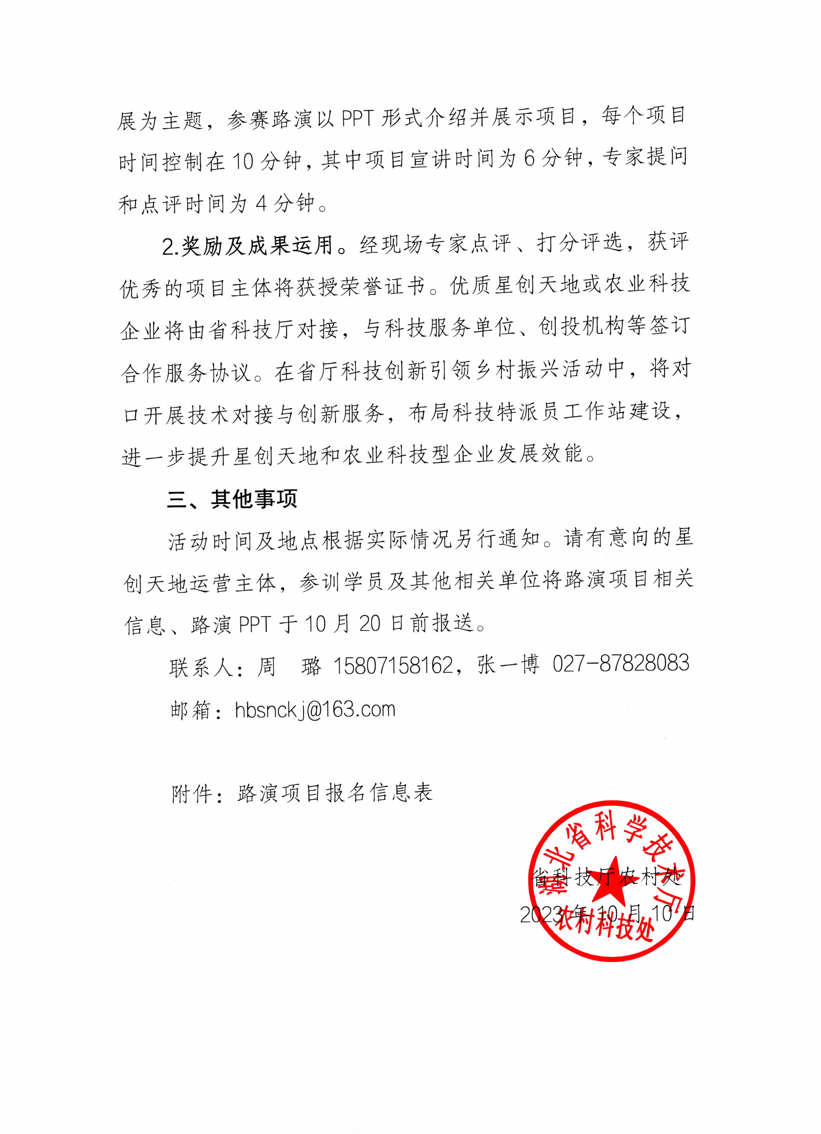 【通知公告】关于开展2023年度“星火燎原·强县有我”全省农业农村科技双创暨星创天地项目路演活动的通知