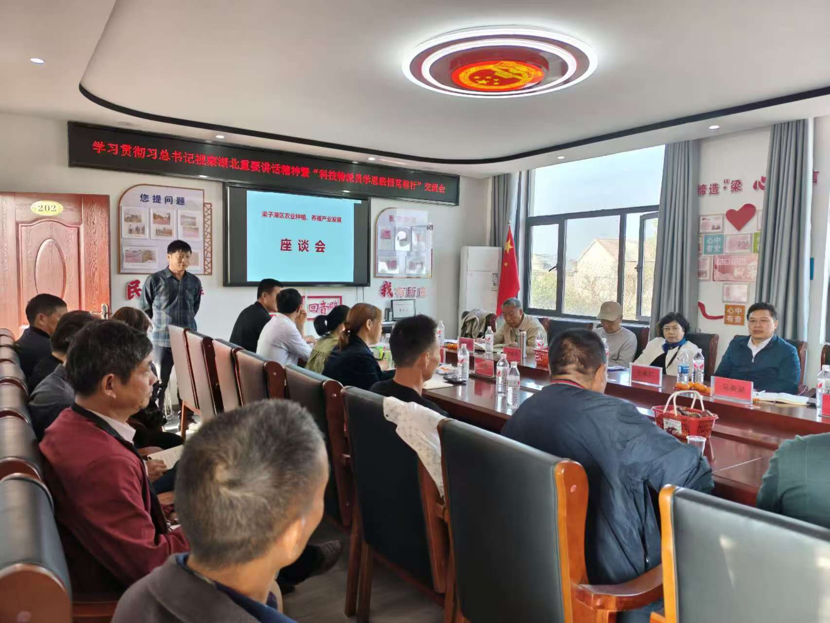 华中农业大学老科协会长刘松年教授、园林园艺专家蔡礼鸿教授、植保专家侯明生教授、水产专家王卫民教授等9位专家教授、科技特派员与会。会上,首先集中学习习近平总书记考察湖北重要讲话精神,部分科技特派员代表就如何落实习近平总书记的讲话,谈了自己的感想。各专家教授结合自己的领域特长,直观深入分析了当前梁子湖区在农业生产中面临的困境及解决思路,为今后梁子湖区及我市农业科技发展提供了新思路。