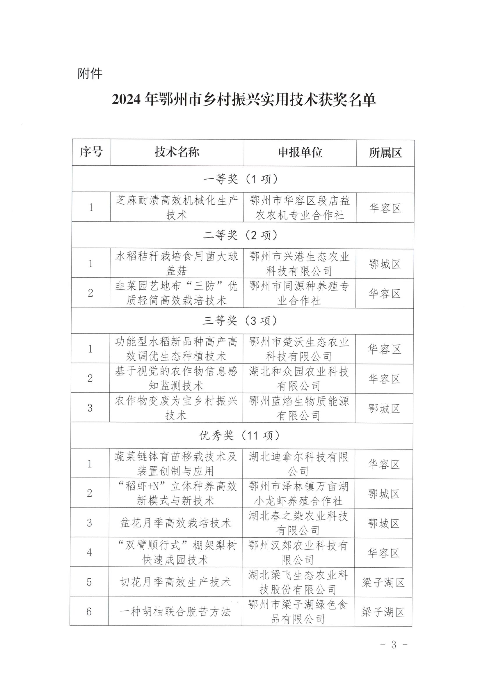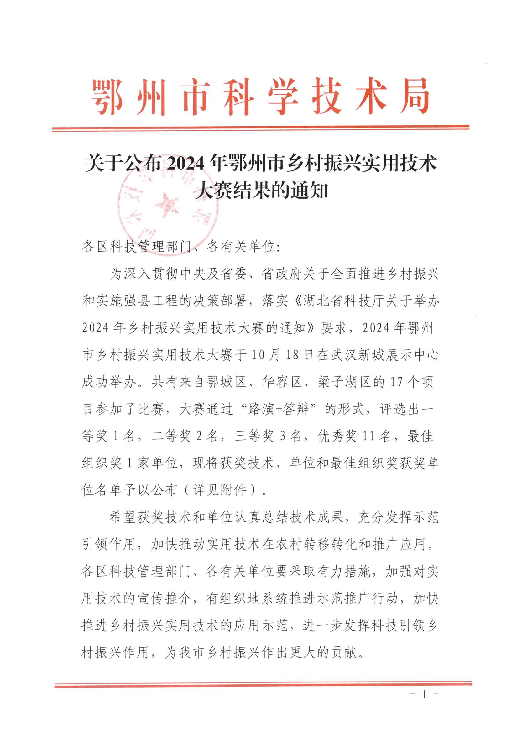 关于公布2024年鄂州市乡村振兴实用技术大赛结果的通知
